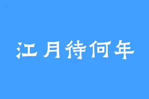 江月待何年